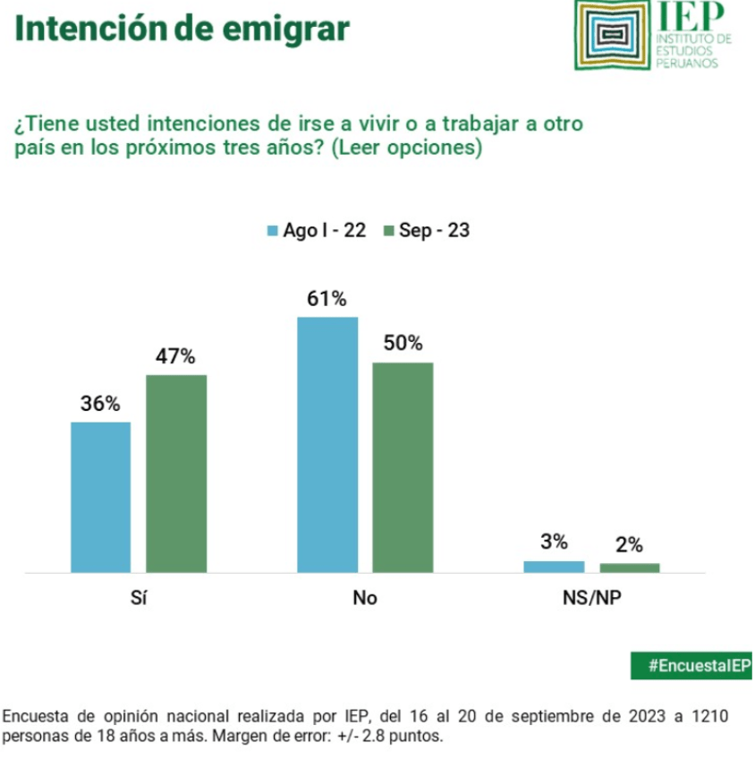 5) ¿Cuál crees que sea el efecto de la migración juvenil para el país? Super dañino. A un país pobre donde su fuerza laboral (poca capacitada y poca productiva) se les va. No existe ningún tipo de esperanza. Yo ya claudique. No veo un proyecto de país real en el Peru a largo plazo. Disculpa mi visión pesimista.